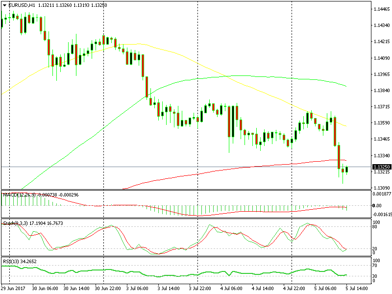 A few hours ago there was a great selling opportunity. In the forex chart above, we see that the trend clearly points downward and the 50 SMA (yellow) was providing resistance on top.