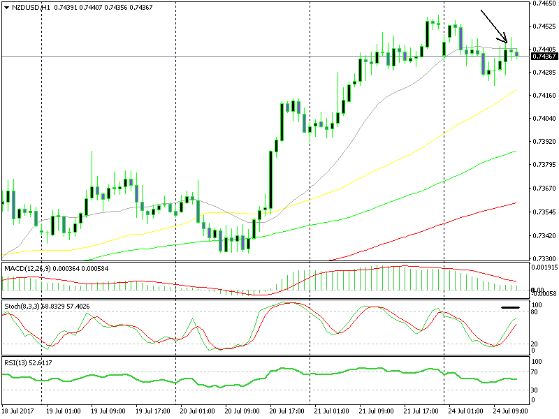 So, the Kiwi hasn´t been able to follow the climb in AUD/USD which means that it´s a lot weaker than the Aussie. Now that AUD/USD is turning lower, NZD/USD should decline harder or at least just decline until it reaches our take profit target.