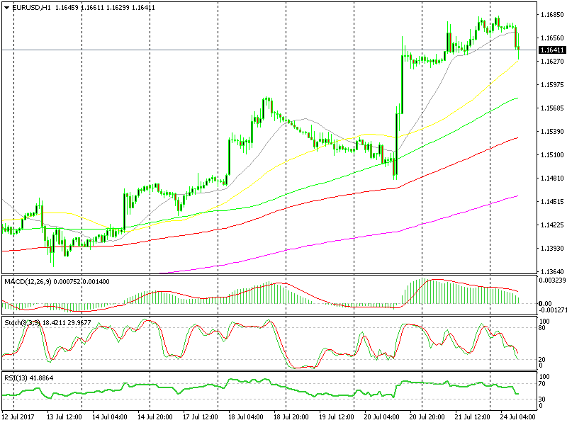 EUR/USD broke below the 20 SMA but we still have the 50 SMA to take out
