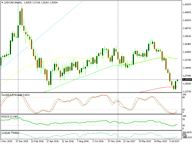 The 100 SMA (red) on the daily forex chart held the price despite being broken briefly. USD/CAD continued its climb after losing about 14 cents or 1,400 pips in the last three months. Today this forex pair is extending the top side and we´re now playing with the 1.27 level.