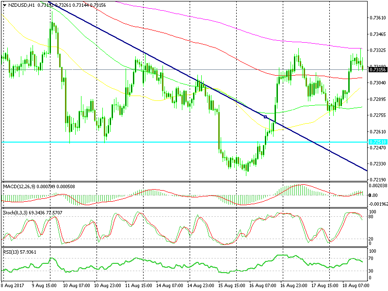 A few hours ago we opened a sell forex signal in NZD/USD as it tried the upside in the morning but failed to take out yesterday´s high or break the 200 SMA on the H1 chart. We moved down for a moment, moved back up and now we´re heading back down.