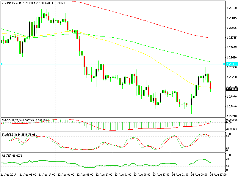 We opened a sell signal in this forex pair a while ago. As I mentioned in the previous forex update, I was waiting for the price to reach 1.2840-50 in order to sell this pair, but after making a doji on the hourly chart, I decided to open the signal.