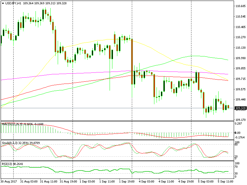 We´re close to the massive support area in this forex pair and the market is getting tired of North Korea so this pair might reverse anytime if parties decide to sit down and have a talk. Though, that’s not happening at the moment, especially after the comments from the North Korean ambassador.