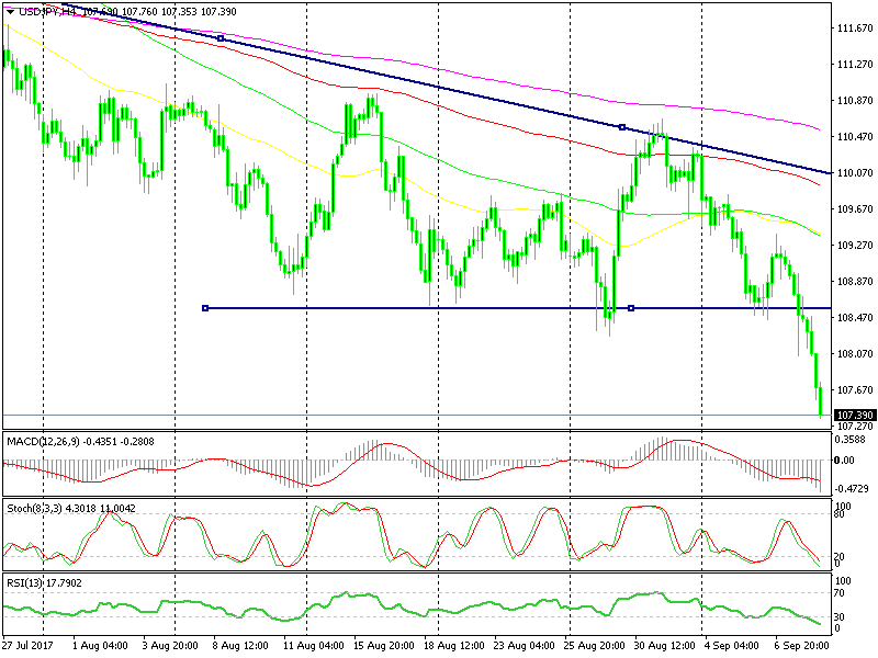 Speaking of USD/JPY, this forex pair finally broke the big support level at 108. That was the line in the sand for this forex pair and now it is gone.