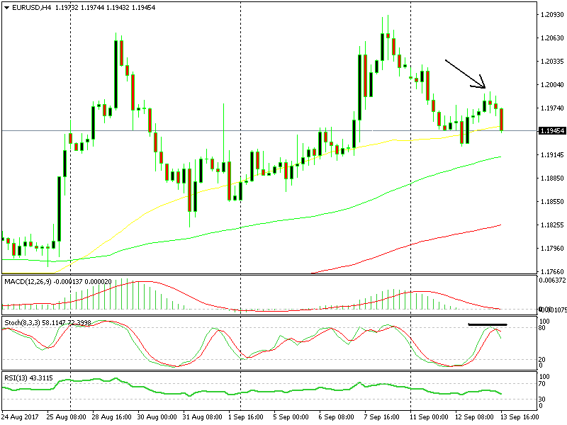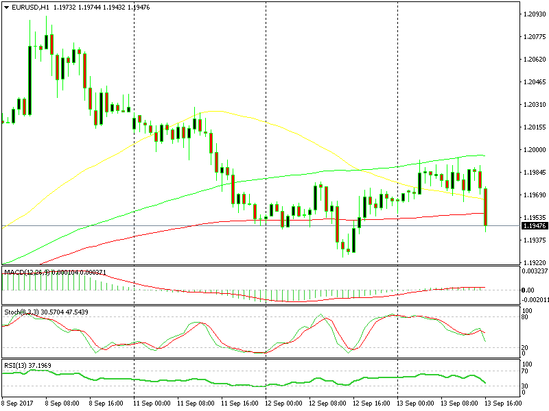 For starters, if you look at the hourly forex chart, you can see that the buyers were having trouble at the 100 SMA. It had provided resistance all morning, and it looked like the buyers couldn’t push above it – no matter how hard they tried.