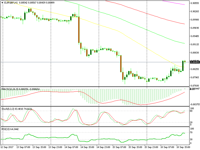 The GBP didn’t like that and GBP/USD extended its decline to about 150 pips top to bottom. EUR/GBP is relatively higher which puts our sell signal in this pair in danger.