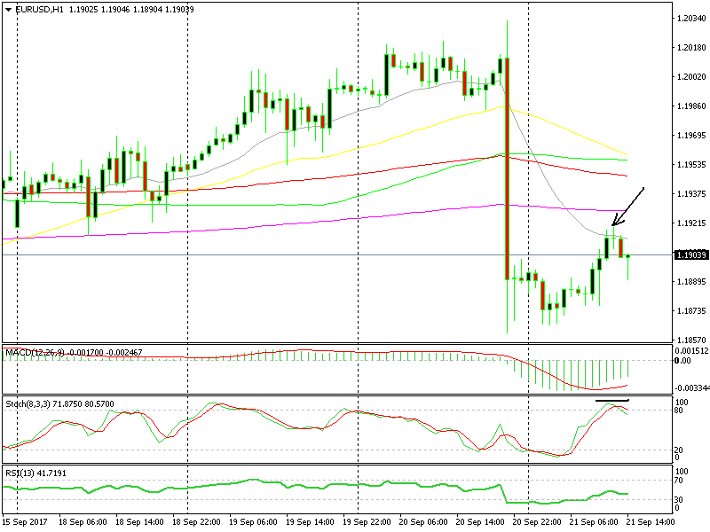 We decided to take a small trade while waiting for Draghi a while ago. We couldn’t go long since the decline yesterday was pretty big, and we don’t want to go against such a move.