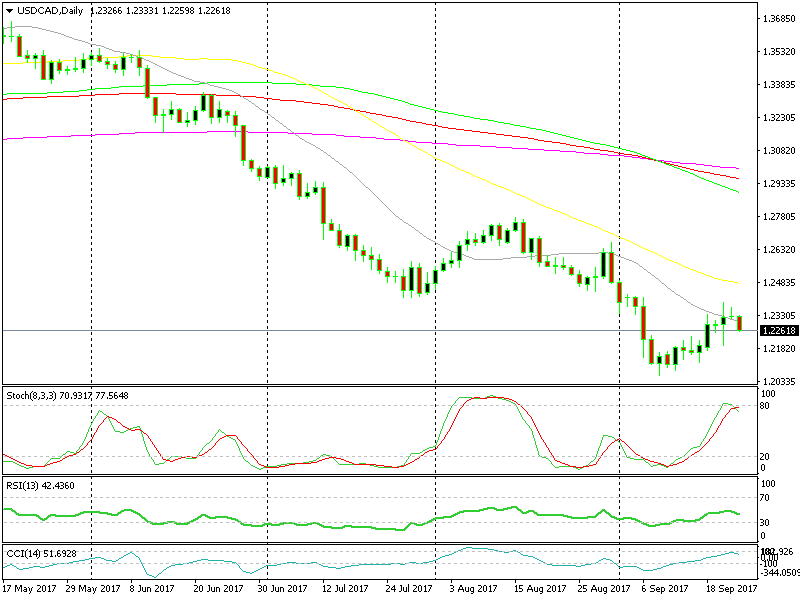 NZD/USD has been following an uptrend in the last few weeks, but on Wednesday the trend changed after the FOMC statement. We have been trending lower in the last couple of days, but this morning USD/CAD has completed a retrace higher.
