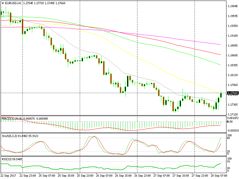 Now, stochastic is oversold, and the 50 SMA is providing resistance on the H1 chart, so the odds are much better and that’s why we went short. The trend might as well change, but we have to trade and you can’t get a better chart setup for sellers than this.