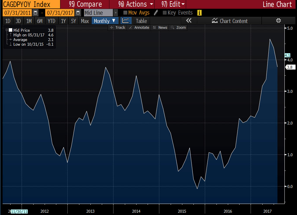 The afternoon reserved more bad news, this time from the US. The Canadian monthly GDP came out flat, while the US core price index fell to 1-3% from 1.4% previously.