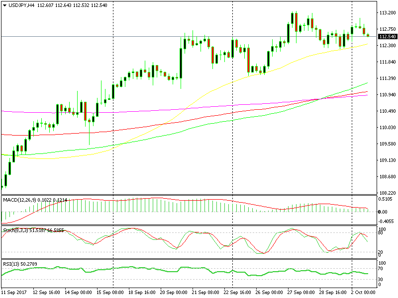 Looking at the hourly USD/JPY chart, you can see there is an opportunity for a buy trade right now in this forex pair. The hourly chart is