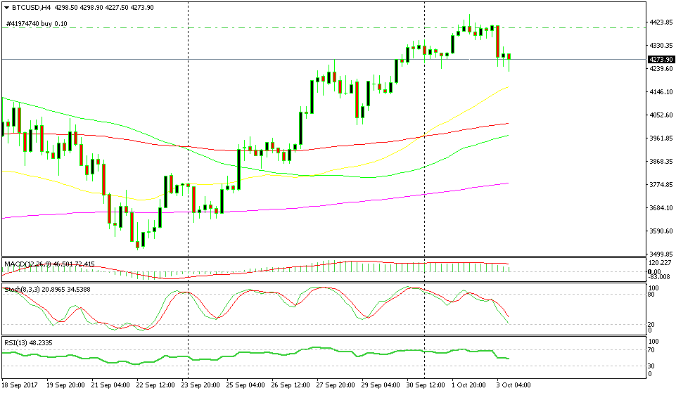 Well, as you can see from the H4 chart above, Bitcoin is almost oversold on this timeframe. The stochastic indicator is near the bottom of the window and soon it will be oversold.