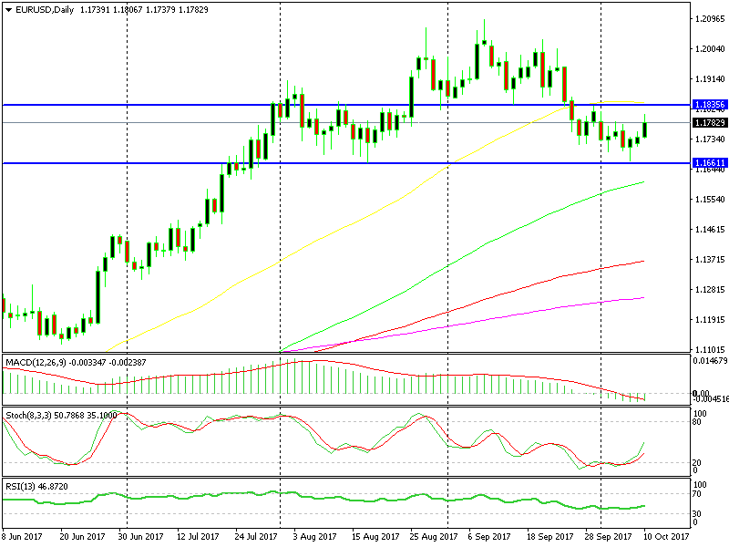 We already have a long-term sell signal in this forex pair, but the charts are building up for another sell position. The monthly chart shows two morning star candlesticks, which are bearish signals after an uptrend. Also, as you can see from the daily chart above, the 50 SMA is standing at 1,1820-30 which is a previous support and resistance level. So, I’m thinking of adding another short position to our existing sell signal here if the price gets up there.