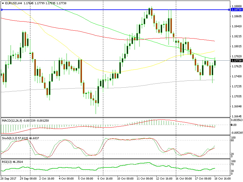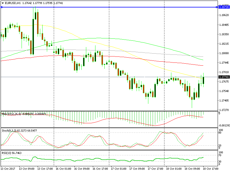 Besides that, the previous hourly candlestick closed as an upside down pin which is a reversing signal. So, technically this pair looks bearish, despite the latest push higher. The situation in Spain is not getting any better as Spanish officials threatened Catalonia earlier today. So, fundamentally the Euro is bearish too.
