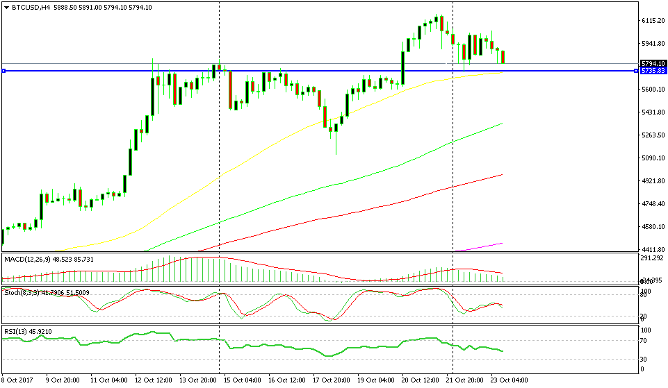 We know that Bitcoin and all the crypto market is in a bearish mode right now, but our job is to predict the future, isn’t it? So, I’m predicting that by the time we reach the 50 SMA (yellow) which stands around the $5,730 level, the sellers would have had enough, and the buyers will take over.