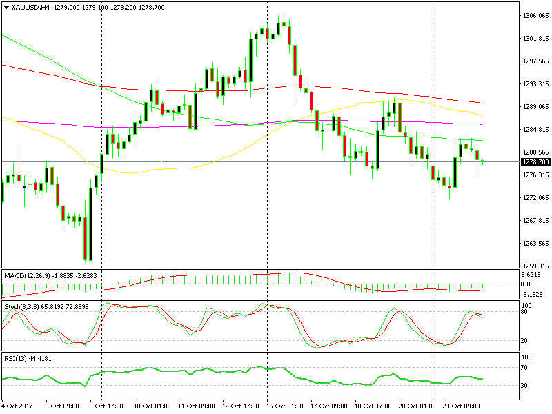 The last few H4 candlesticks looked also bearish since they closed as dojis or pins. These bearish indicators were more than enough for us, so we opened a sell Gold signal. It looks good at the moment, but let’s give it the time it needs.