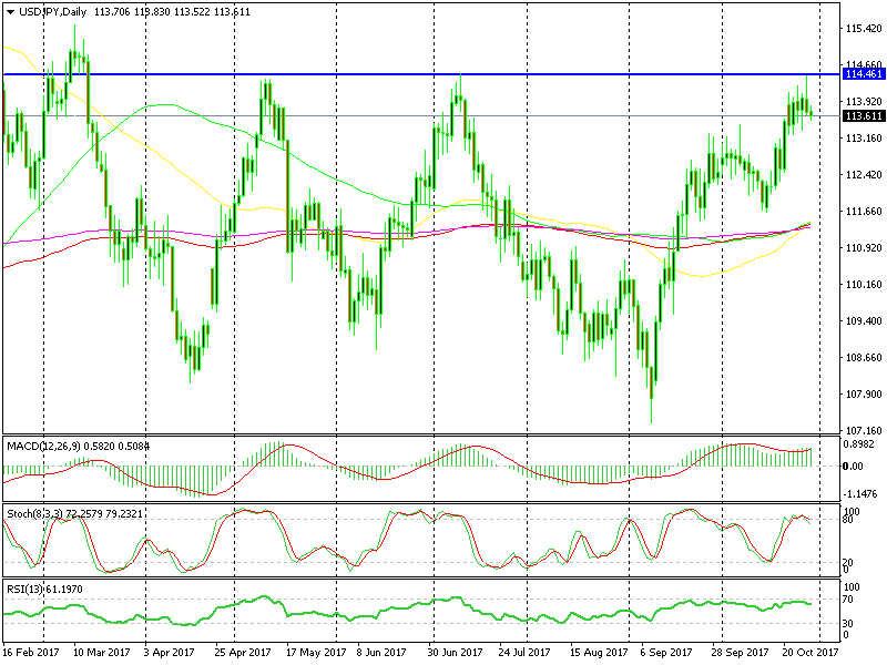 But last week, the price approached an important level and on Friday USD/JPY touched that level and reversed back lower. I’m talking about the 114.30-40 area which has acted as resistance a couple of times in May and July.
