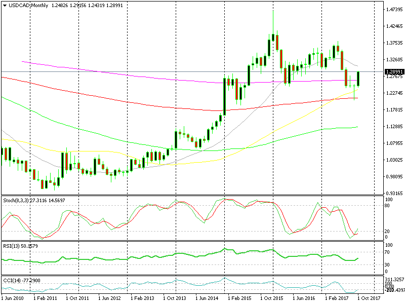 So, I expect the Canadian Dollar to continue sliding lower in the coming days/weeks. The monthly USD/CAD chart looks pretty bullish with a big bullish candlestick after a pin last month, which did signal a reverse. By the way, we just closed the Gold signal for a hefty profit.