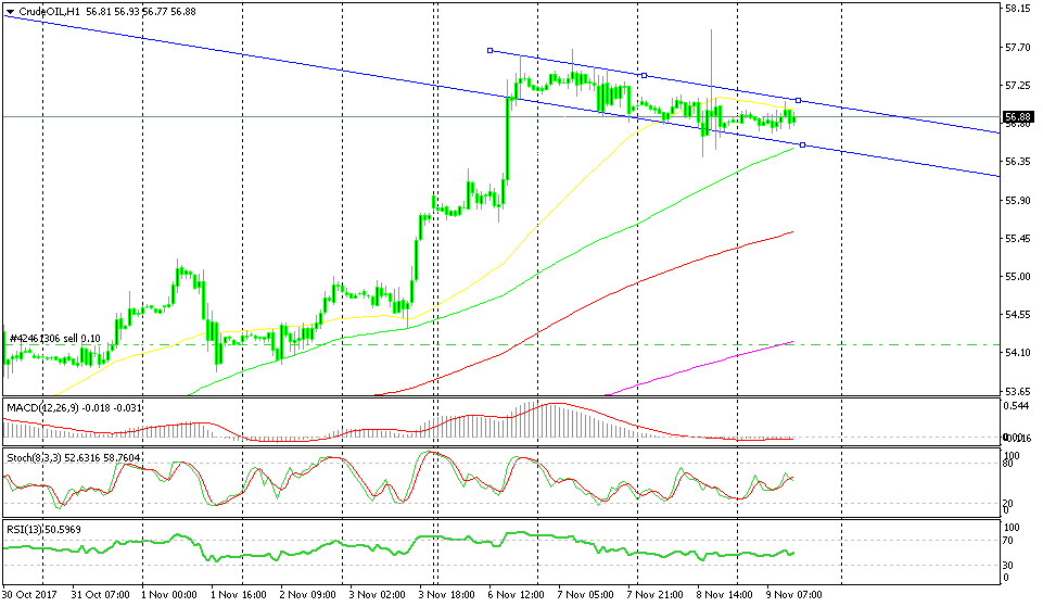 Oil prices have been climbing relentlessly in the last month or so. The climb accelerated by the end of last week and the beginning of this week, but in the last few days, Oil prices have been consolidating around the $57 region, give or take half a cent.