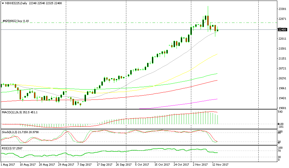 We opened the Nikkei signal last Thursday as the Japanese index was putting up a pullback after a strong and steep uptrend. The pullback turned into a bit of panic, and it ended up being much deeper than most forex traders were expecting.