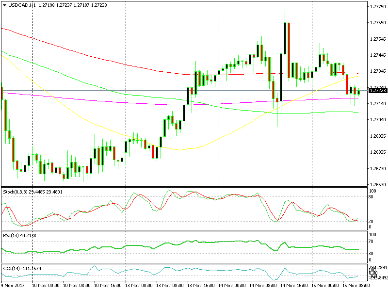 We just opened a forex signal in USD/CAD, so we’re back on this forex pair. As you can see from the H1 forex chart above, the price has moved higher in the last few days, which means that the CAD is losing ground against the Buck. At the same time Oil prices have taken a turn south, so the correlation remains.