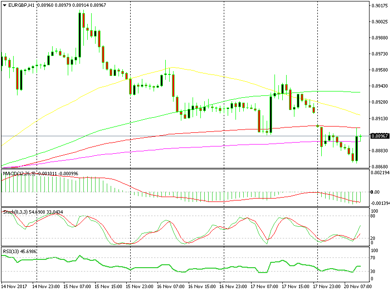 As you can see from the hourly EUR/GBP chart below, we sold this pair as it was retracing higher after a jump in GBP pairs due to some Brexit chatter.