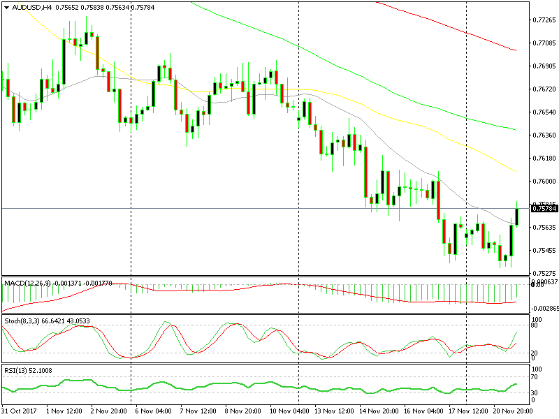 AUD/USD has just made a jump higher which currently accounts for around 40 pips. This is the first jump in the last two weeks for this fore