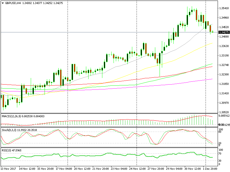The top last week stood at around 1.3550. This forex pair closed above 1.35 last Thursday, but couldn’t stay above that level for too long. This sort of price action indicates that the selling pressure is strong above 1.35.