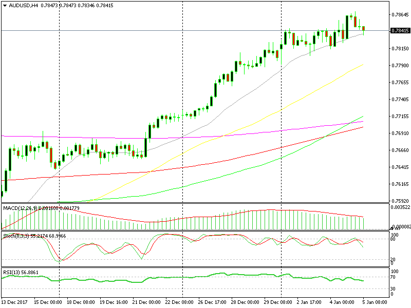 As it can be seen on the chart above, this forex pair has formed an upward channel. The tops have been getting higher, and the lows are getting higher as well. The lower trend line has been providing support, and the price is close to that line once again.
