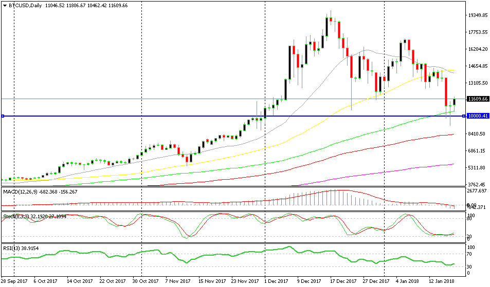 Actually, it started yesterday and by the end of the day, the signs were very strong. All major cryptos had stopped right at 50 or 100 moving averages on the daily or weekly charts. Besides that, they formed dojis and hammers with the daily candlesticks, which are strong reversing signals.