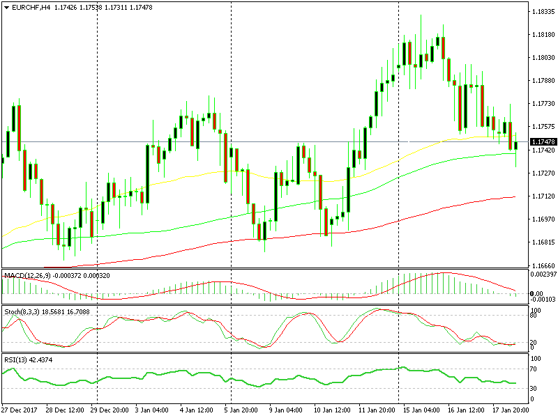 The 100 SMA is holding on the H4 EUR/CHF chart