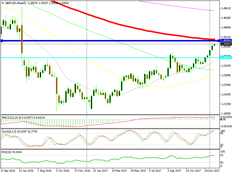 As you can see from the weekly chart above, GBP/USD is now approaching the 1.40 level. This is a big round number, so it should provide some solid resistance.
