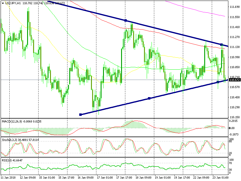 That being said, this is also the area at which the lower trendline of the triangle comes at the moment. We can see that this pair has formed a triangle on the hourly chart. That is becoming more narrow as the trading range gets smaller.