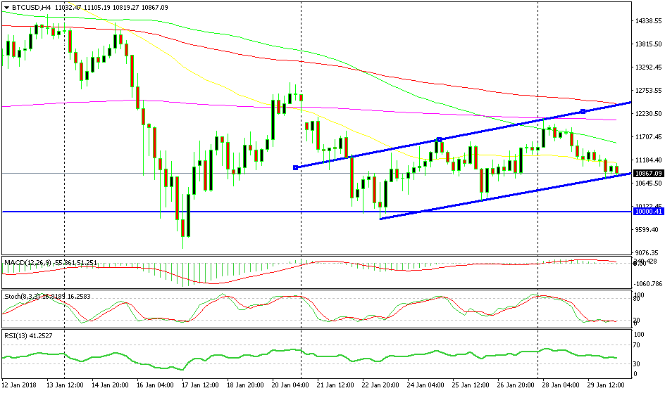 It seems like Bitcoin has formed a bottom between $10,000 and $11,000. We decided to open a long-term signal in Bitocin. We bought at the bottom of the channel and placed the stop loss (SL) below $9,000. The Bitcoin low so far has been $9,100 according to my cryptocurrency broker, therefore we have to place the SL below there.