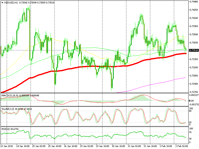 The Buck has found a few bids today, which have taken this pair back to the same levels at which we bought it yesterday. The level around 0.7340-50 has formed a support, and the 50 SMA (yellow) has strengthened it.