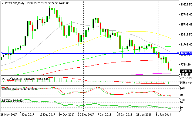 You can see that the 100 SMA (red) provided support for Bitcoin late last week. It eventually got broken, but it held the decline for a few days. So, cryptocurrency traders do look at these moving averages on the daily chart. Today, Bitcoin is bouncing off the 200 SMA. This might be the reversing level; after all, the daily charts are severely oversold. But, we will have to wait and see if the bounce gains pace and turns into a proper reversal.