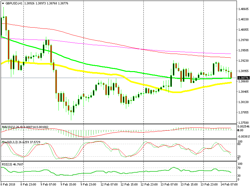 So, we decided to open a sell forex signal at 1.3887 in the afternoon. GBP/USD went down and then back up again, now it is turning down, so our signal here looks good at the moment.
