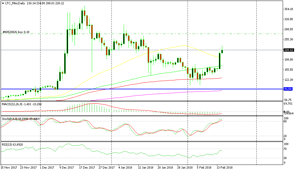 In fact, Litecoin started the surge of the last two days. Litecoin is introducing debit cards and a new and quick payment method for businesses, so the interest for Litecoin has increased recently. This cryptocurrency has surged from $150 to $237 in the last few trading sessions. That has pulled the rest of the market up with it, so it all looks good for cryptos now, the dark times are behind us.
