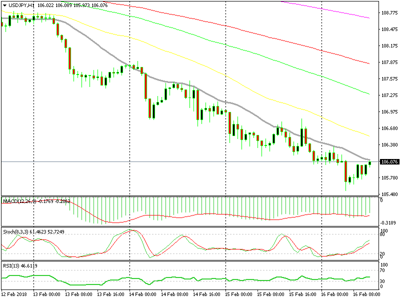 Although, we are pretty close to this moving average and I see that the price has spiked above it occasionally. This might be another one of those cases, so I’m following the price action to see if USD/JPY might spike above the 20 SMA and probably reach the 50 SMA (yellow). Anyway, we are getting ready to sell this pair at any of these moving averages.