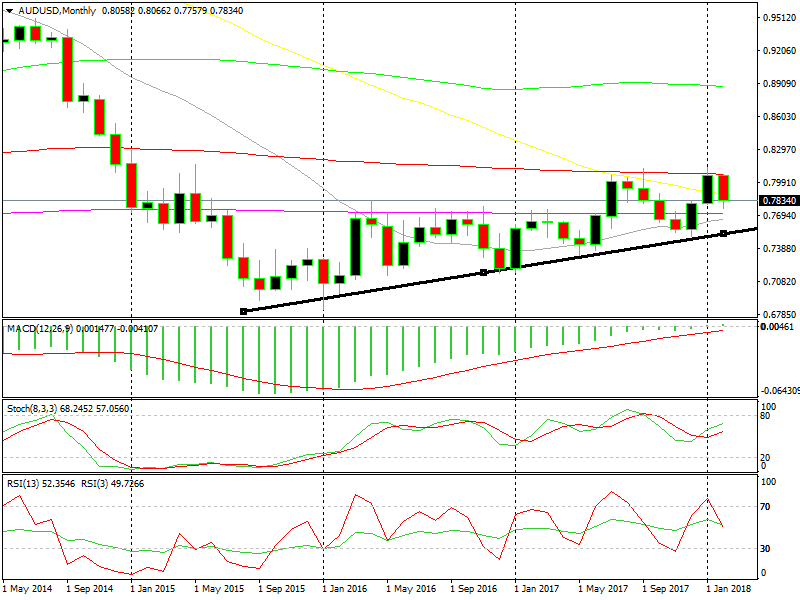 As you can see from the monthly chart below, this pair has been trading on an upward move in the last two months. It has climbed from 0.75 to above 0.81 which means a 600 pip climb.