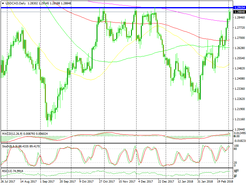 As a result, USD/CAD surged higher again today and now it faces a mid-term resistance level. This resistance level comes at 1.2915-20. In the chart below we can see that it has reversed the price down several times in October, November and December last year.