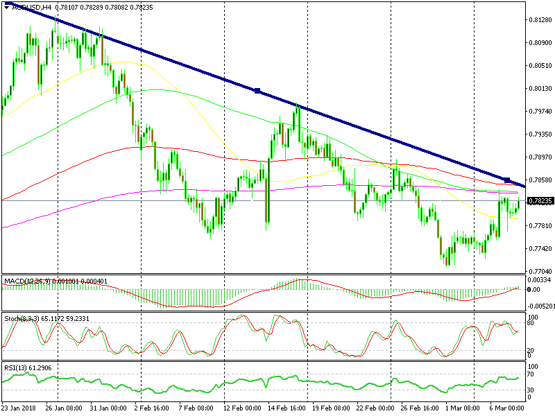 A few hours ago we went short on AUD/USD. The price action was showing weakness on this pair so we decided to open a sell forex signal. The trend line is also catching up with the price. When that happens, the next leg of the downtrend is supposed to resume. We also have a long term sell signal here, so we ae bearish on this pair.