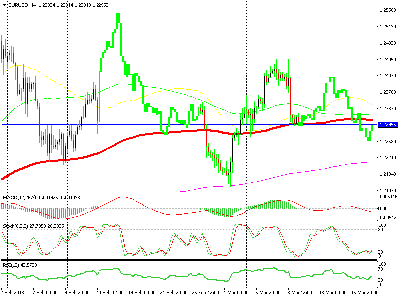 This pullback might be over, particularly for the EUR/USD. This forex pair climbed around 40 PIPs this morning and the 50 SMA (yellow) waits just above the current price on the H1 chart. At the moment, the EUR/USD is trading below 123, a big round number and a resistance level in itself.
