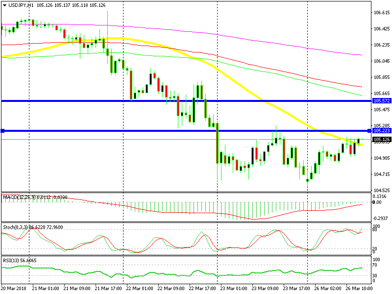 Safe havens benefit when the sentiment turns sour in the financial markets. So, USD/JPY broke below 105 on Friday, but it returned up there again the same day. Buyers pushed up to 105.20s, which was the low this week.