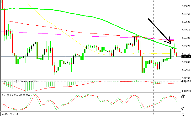 As we said in one of our forex updates yesterday, this forex pair has been trading in a range since last Thursday. The top of the range has been around 1.2330s which we reached a couple of hours ago but couldn’t move above it. That was the first bearish sign.