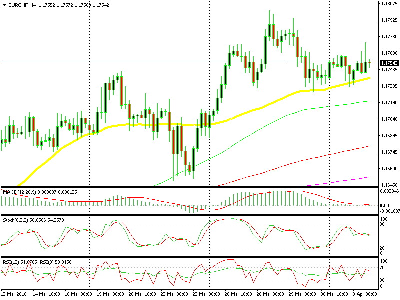 We have a live forex signal in EUR/CHF which we opened last week. We decided to go long on this pair as it was retracing lower from the uptrend. We opened this signal at 1.1760s, but the decline continued further on Friday.