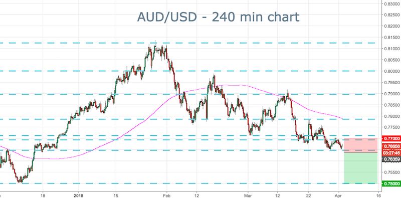Trade Idea: Sell a pullback below 0.7650 after a downside push. Risk 0.7700. Target 0.7500.