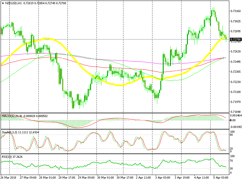 As you can see from the hourly chart above, NZD/&USD has been trading on an uptrend in the last two days. It has climbed from 0.72 to 0.7320s. That’s quite a climb so we can say that the uptrend has been pretty steep.