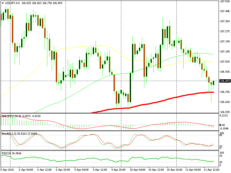 As you can see from the H1 chart below, USD/JPY has been declining today but the trend is bullish. The price has fallen to the 100 smooth moving average (red) but it’s obvious that the buyers are in waiting in big numbers at that moving average.