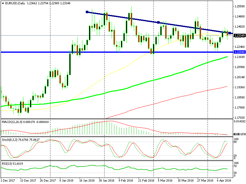 This week has been pretty bullish for EUR/USD. In fact, the bullish momentum started on Friday last week after this pair failed to break the support around 1.22. That level has been a tough nut to crack. The sellers have tried to break it multiple times but they have given up right there.